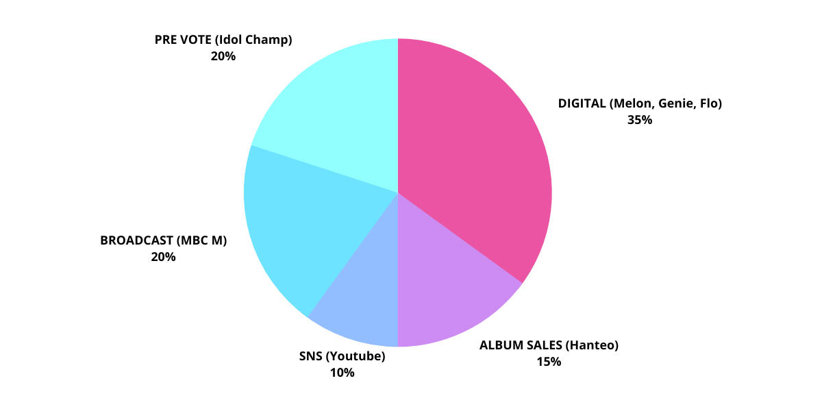 Pre voting - 20% (10% Korean fans + 10% Global fans)